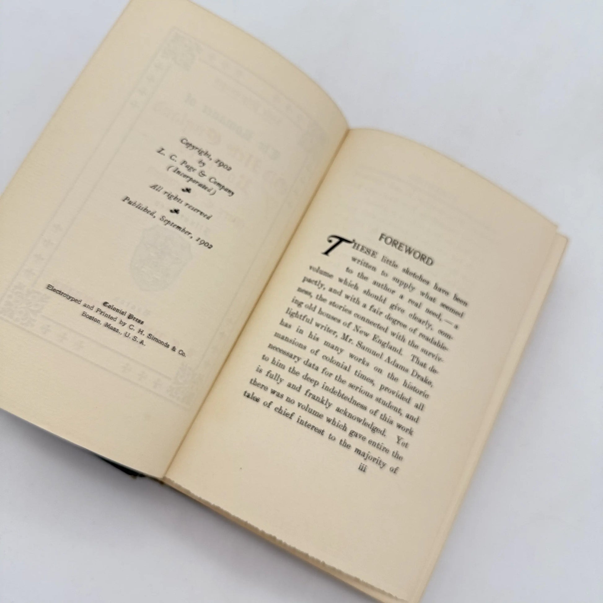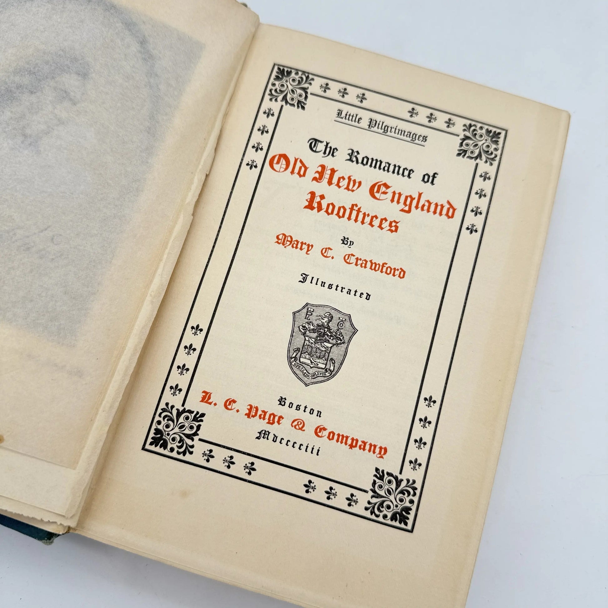 Full title: The Romance of Old New England Roof Trees by Mary Caroline Crawford. Published by Boston, L. C. Page & Company in 1907. 390pp.