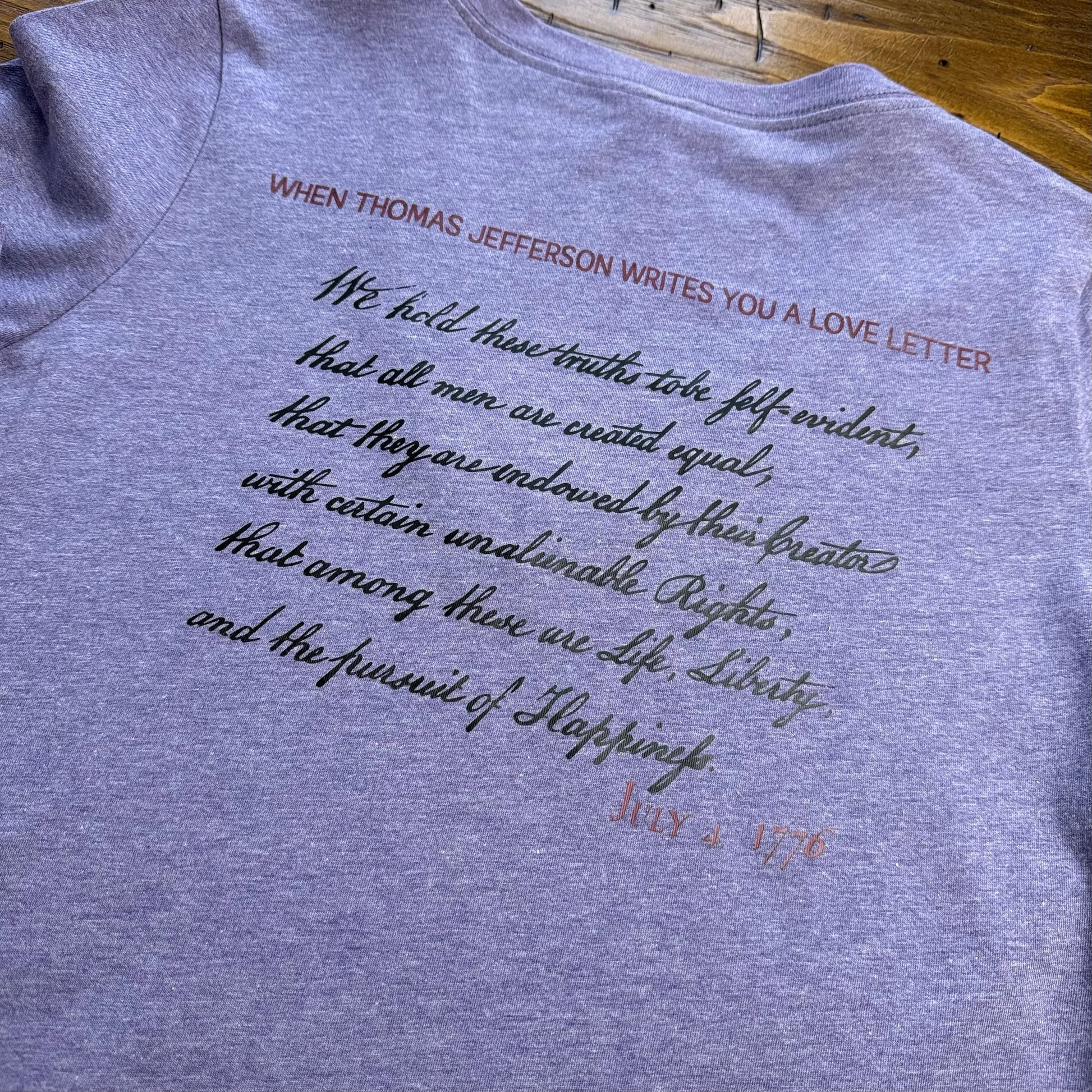 On the back, your choice or two designs, both with excerpts from the Declaration: