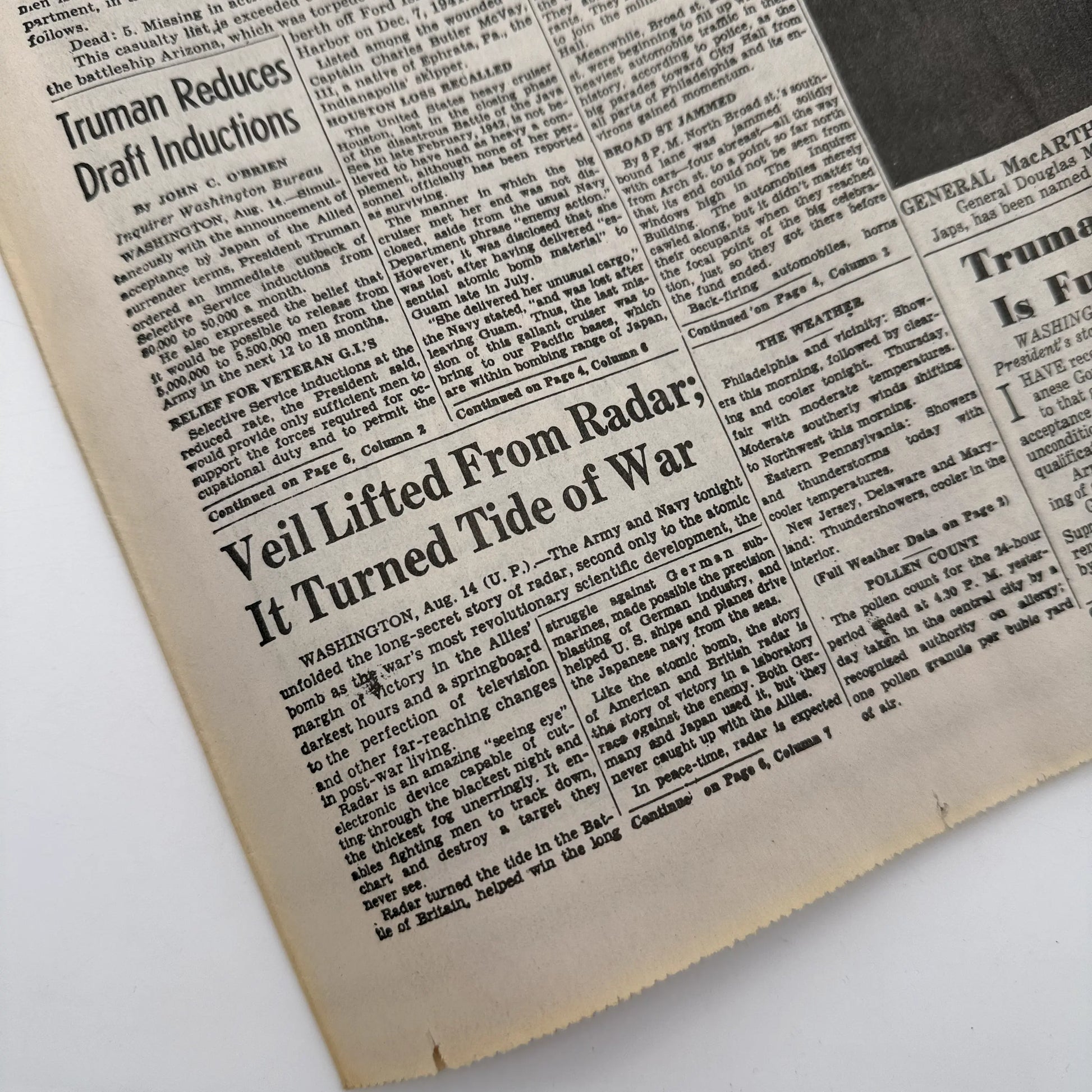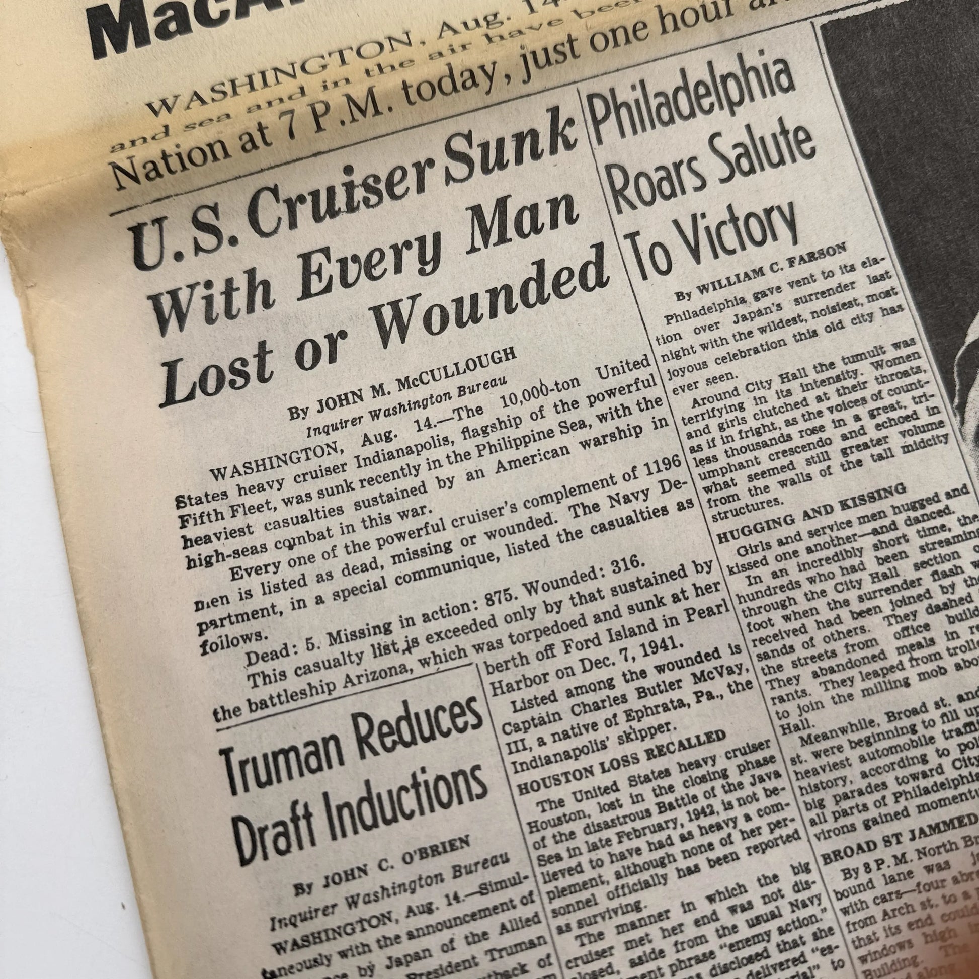 The Philadelphia Inquirer - Wednesday morning, August 15, 1945 - PEACE. Note that this is marked "Reprinted with permission" and "Reissue."