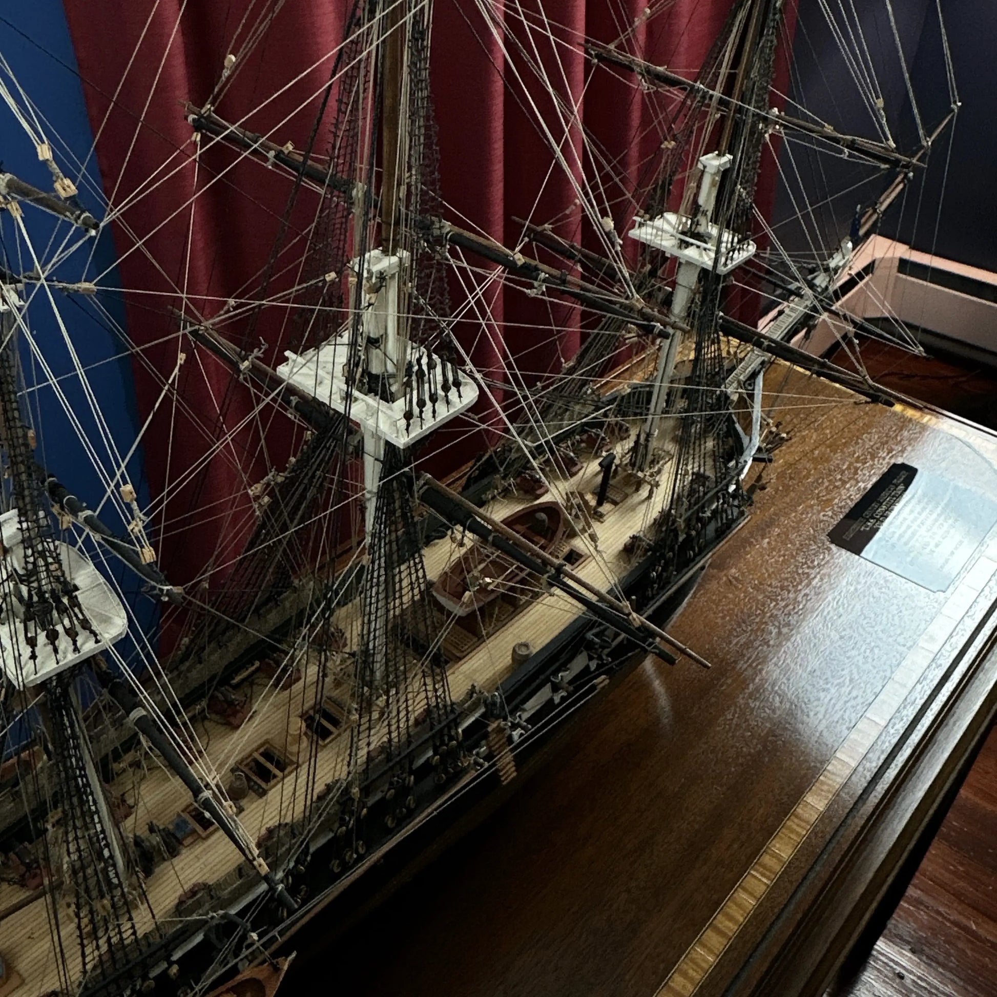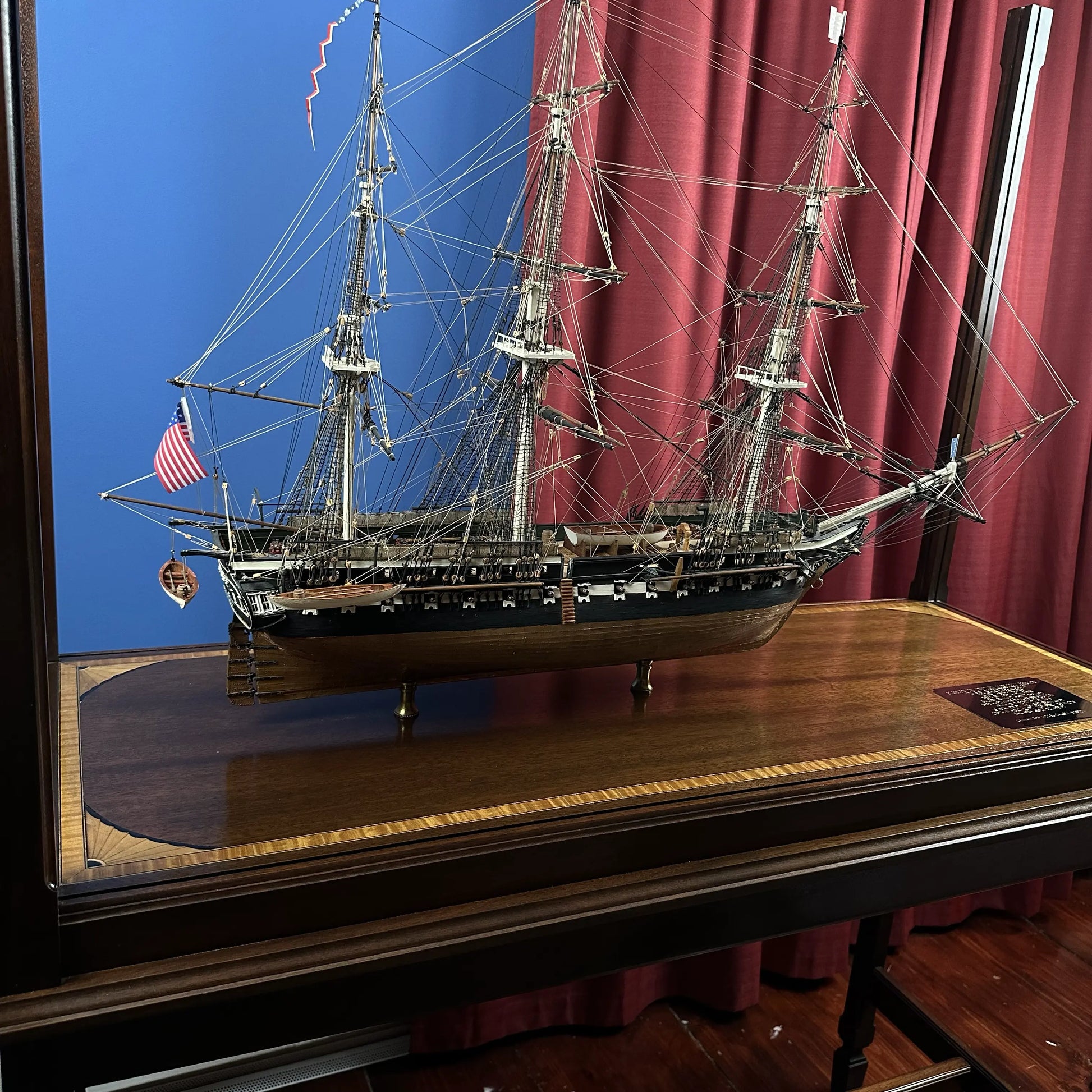 Cased USS Constitution Ship Model from Lannan Ship Model Gallery — with marquetry inlay table