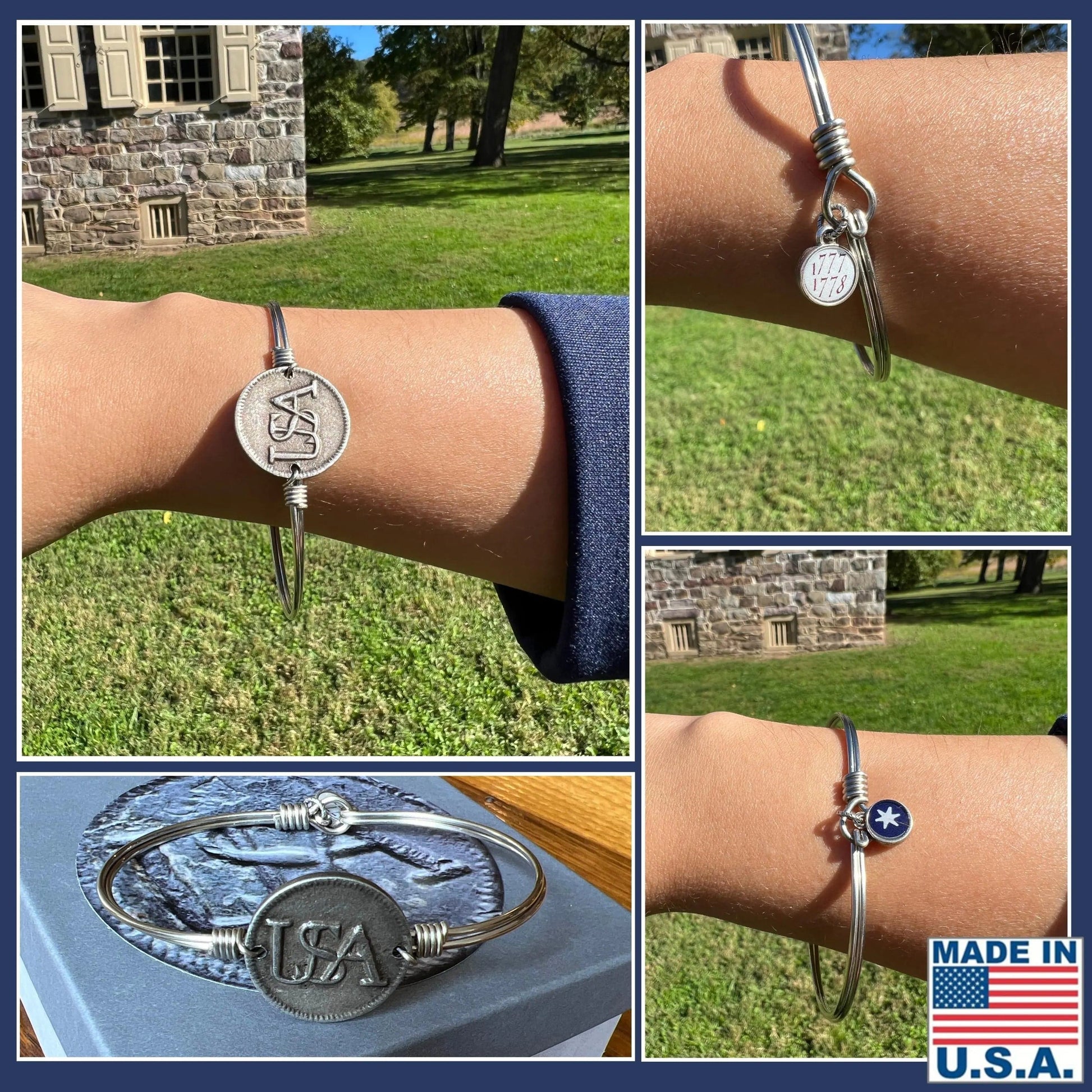 I got the 1773 Tea Party Bracelet first and loved it so much that I brought the USA one too. I am a history nut and Jewelry addict too so for me it was a win, win. It is simply beautiful and the craftsmanship is first rate. Of course I love that it is made in the USA. Grab one of these while you can. Stunning to me.