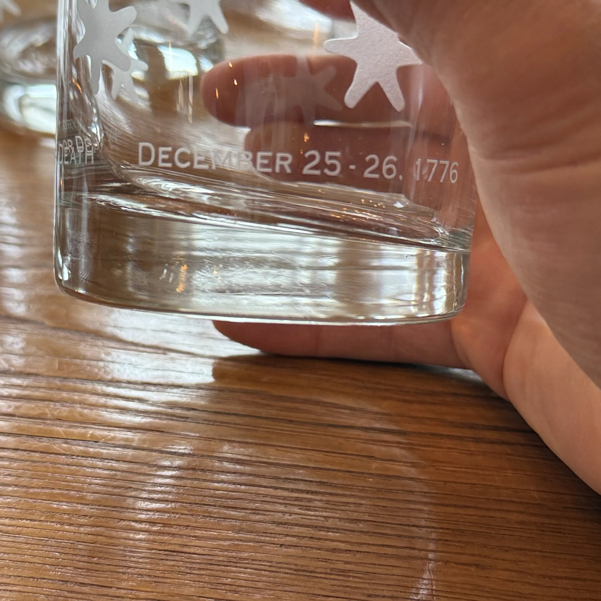 Our original design shows George Washington's Headquarters Flag and includes the sign/countersign used by the Continental Army the night they crossed the Delaware to attack the Hessian garrison at Trenton, along with the dates of the crossing and the attack.
