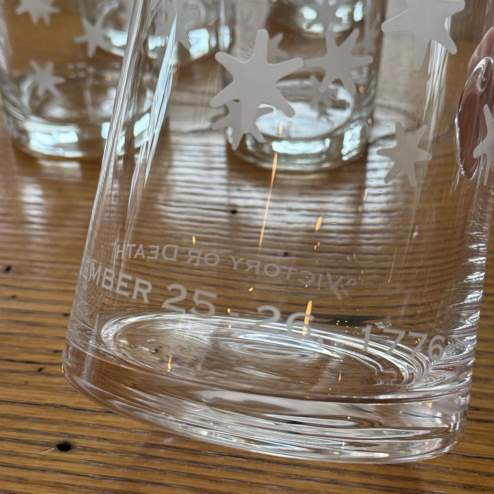 Our 60 oz tankard pitcher is made in America and etched with the stars on a surviving flag used at George Washington’s headquarters.