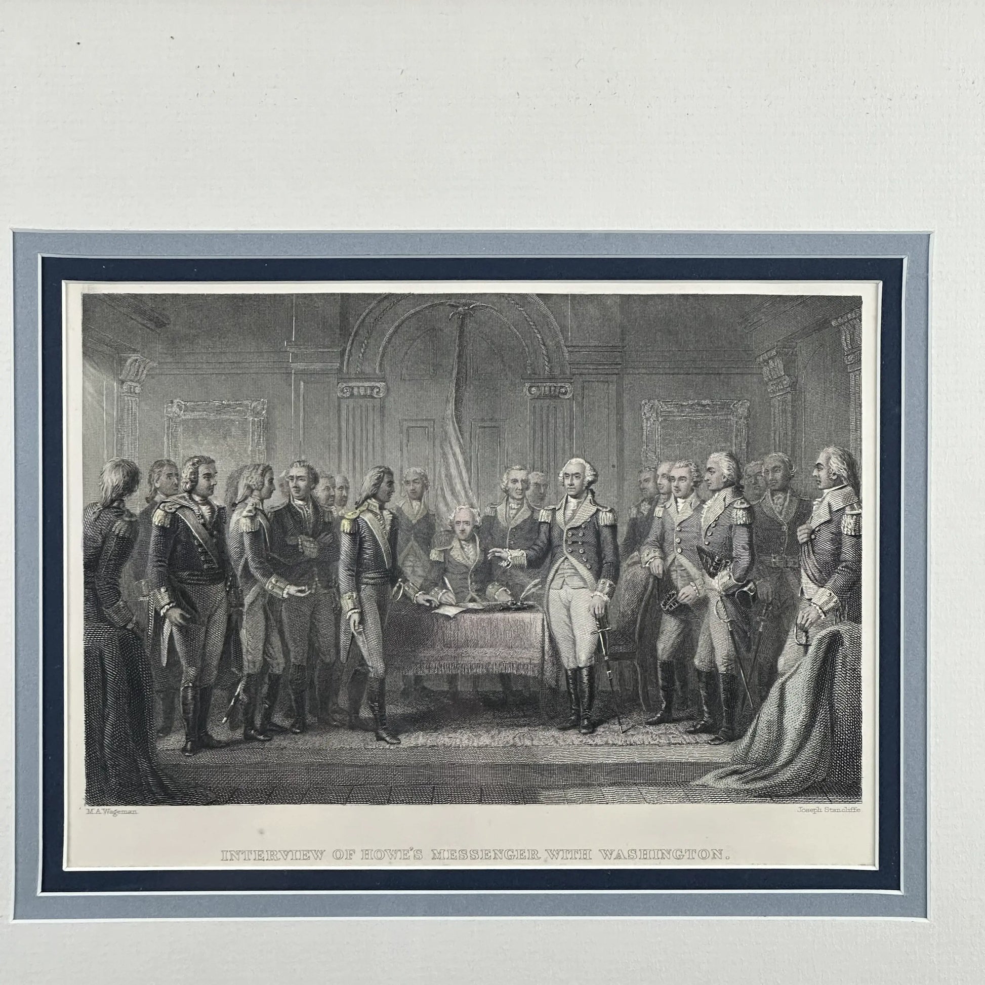 "Interview of Howe's Messenger with Washington" — Matted framed engraving