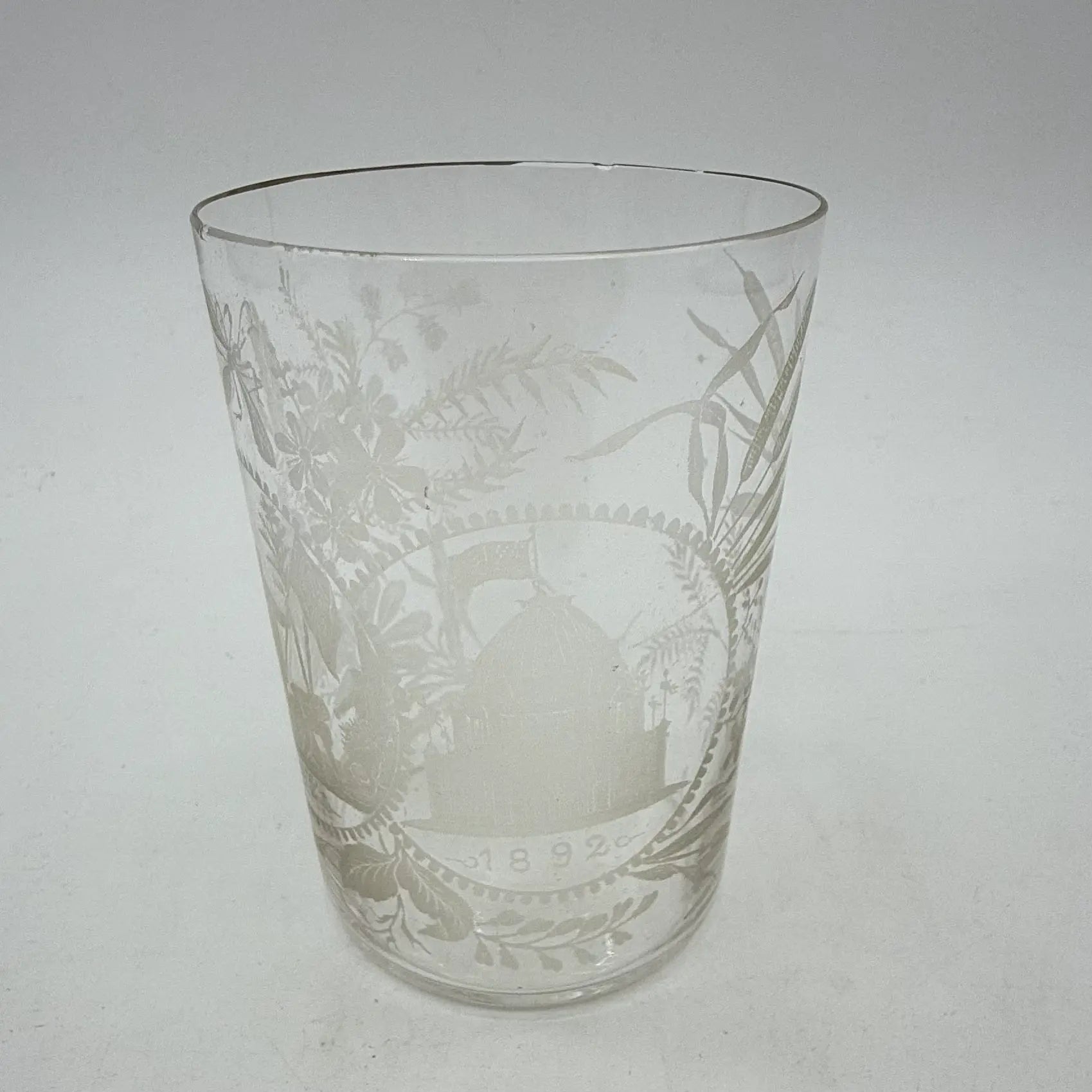 Small etched glass made for the 1893 Columbian Exposition Chicago World's Fair.