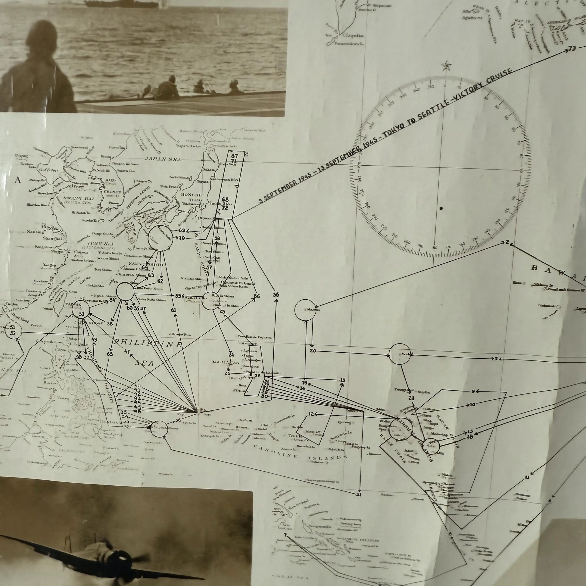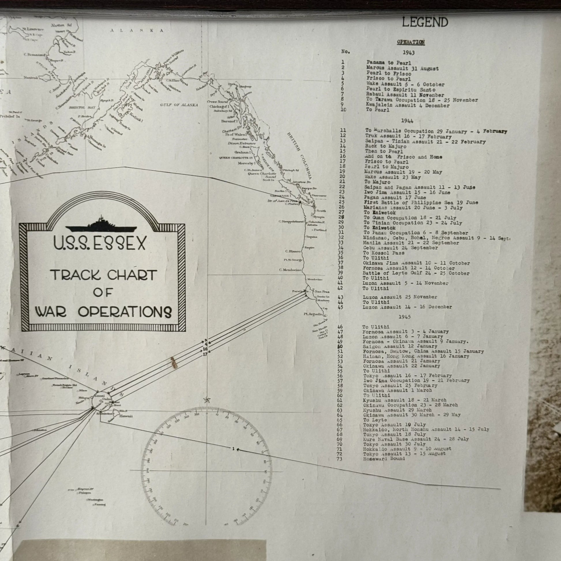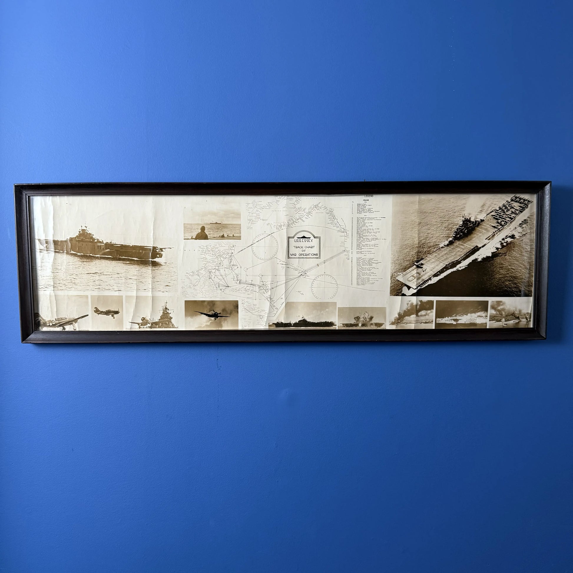 WWII USS Essex Aircraft Carrier Track Chart of War Operations in WWII
